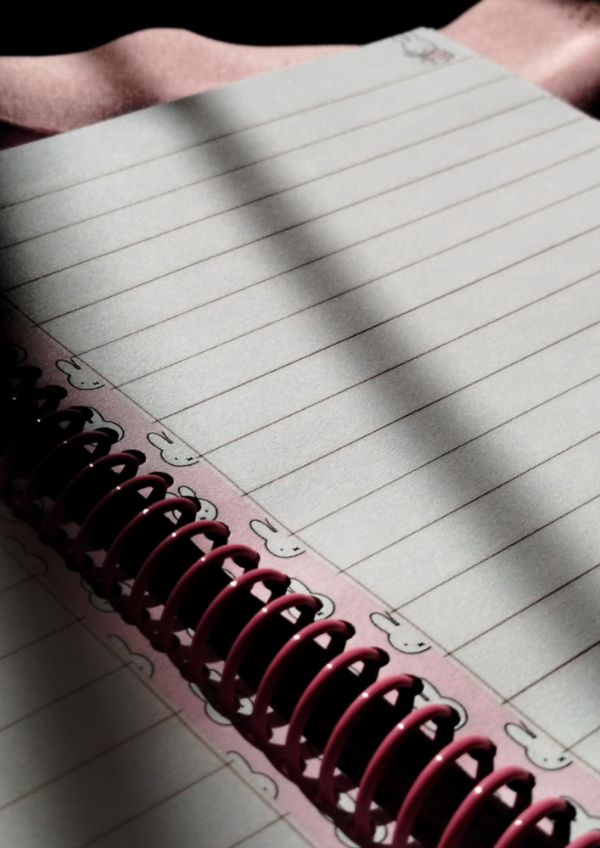 Cuaderno con portada tapa dura, contiene 100 hojas y márgenes con temática <3